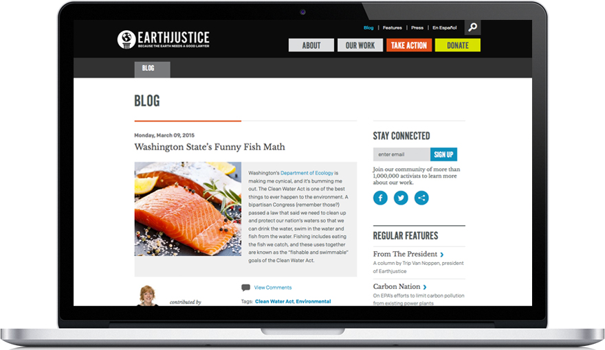 A non-profit public interest law organization, Earthjustice uses the power of law and the strength of partnership to protect people’s health; to preserve magnificent places and wildlife; to advance clean energy; and to combat climate change.