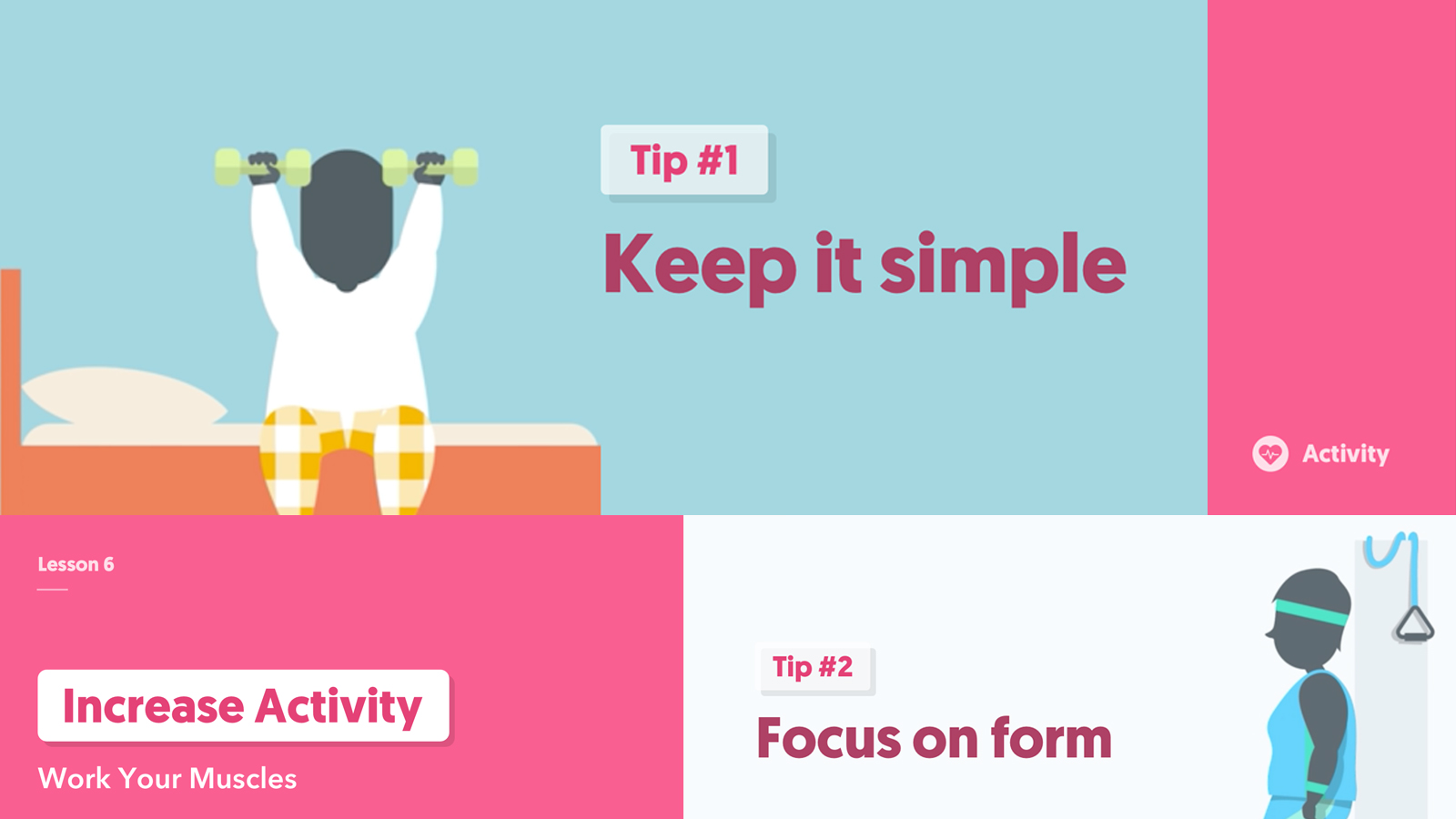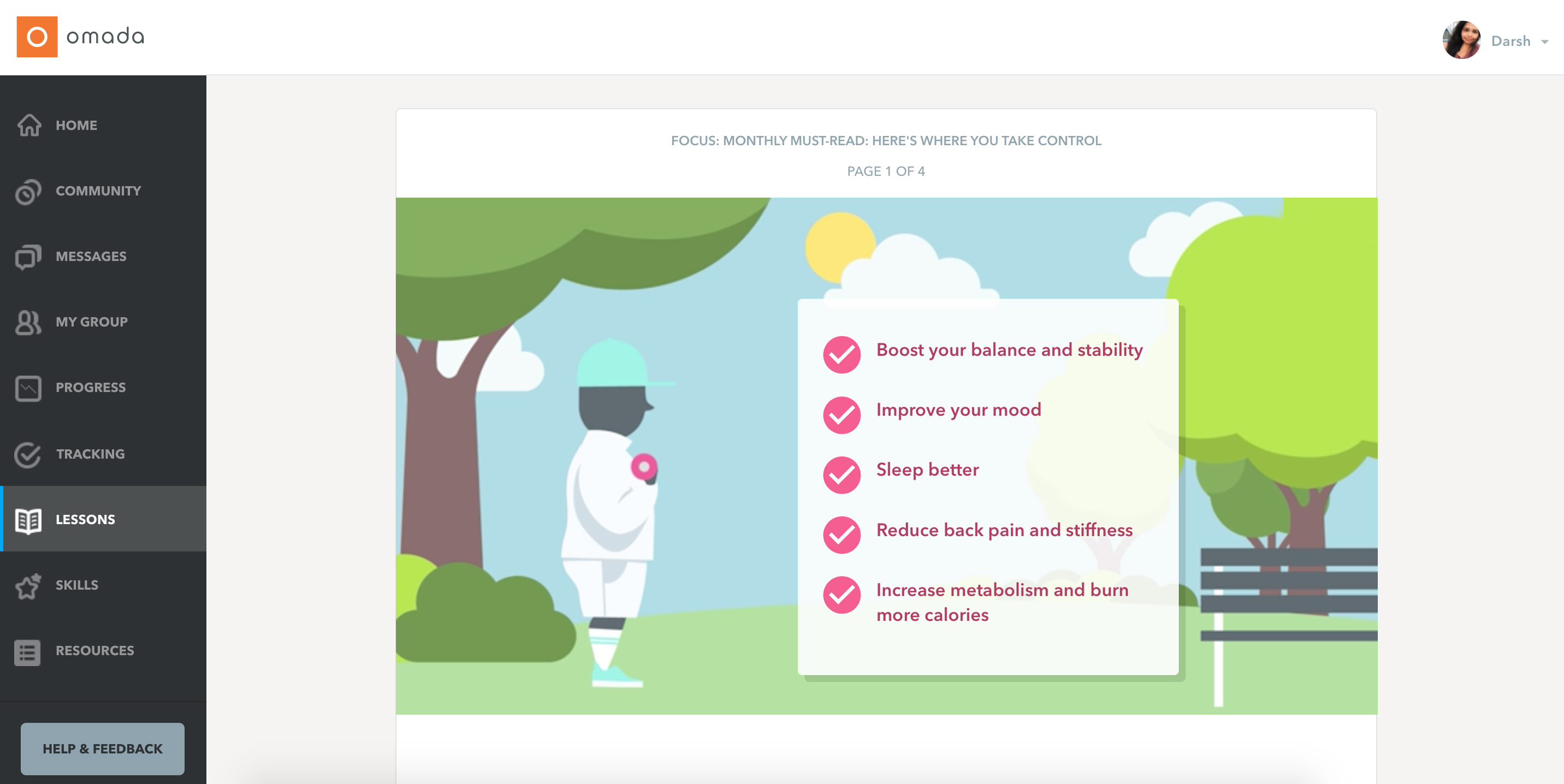 Project 2: Leveraging visual design systems across the Omada Program, on food tracking and weekly lessons.
